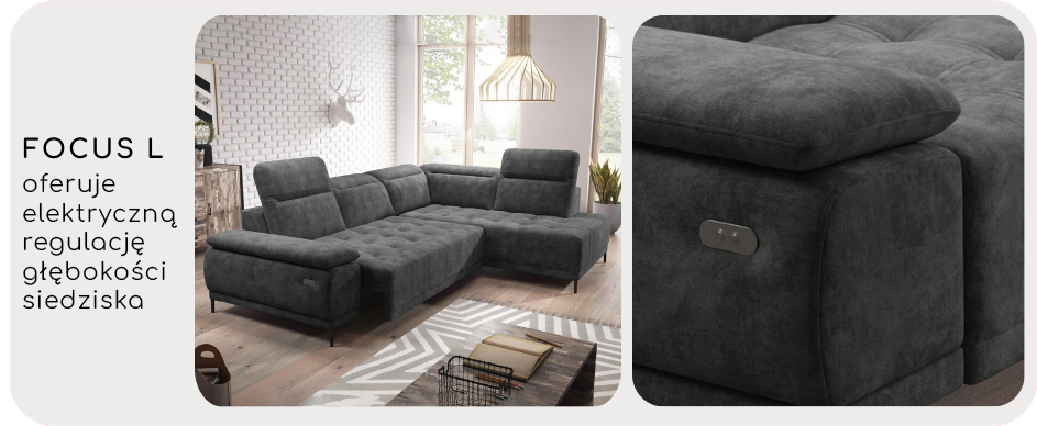 - Elektryczny wysuw siedziska lub powierzchni spania, a także możliwość podniesienia podnóżka.