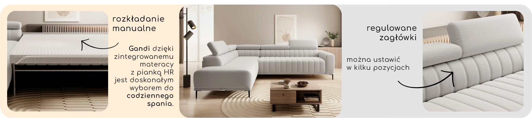 ✔ osoby praktyczne mogą wybierać spośród wytrzymałych, łatwo czyszczących tkanin, również pet-friendly.