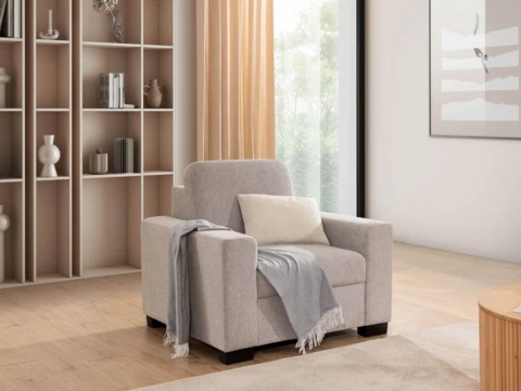 Fotel może funkcjonować jako samodzielny mebel lub stanowić część większego zestawu modułowego,