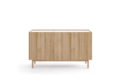 Komoda Boho zapewnia w salonie praktyczną przestrzeń do przechowywania, a jednocześnie dzięki nowoczesnemu designowi stylowo uzupełnia aranżację wnętrza. Kolekcja Boho ociepla pomieszczenie harmonijnymi tonami dębu riviera, tworząc przytulną i elegancką atmosferę. Górny blat w dekorze białego marmuru nadaje meblowi lekkości i ponadczasowej elegancji. Dotykowy system otwierania podkreśla minimalistyczny charakter komody, a solidne nogi z litego drewna wzmacniają jej stabilność i robustny wygląd.