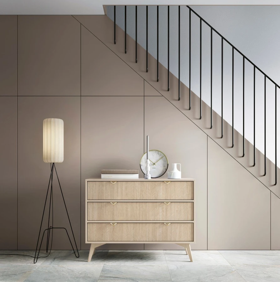 Kolekcja Forest wnosi do aranżacji skandynawską elegancję, a jasna, stonowana kolorystyka nadaje wnętrzu lekkości i ponadczasowego charakteru. Dostępna jest w dwóch eleganckich wariantach kolorystycznych – jasnym eukaliptowym oraz piaskowo-beżowym. Subtelne złote metalowe uchwyty podkreślają elegancki wygląd mebla.