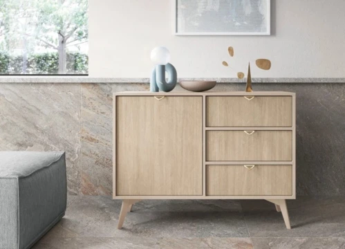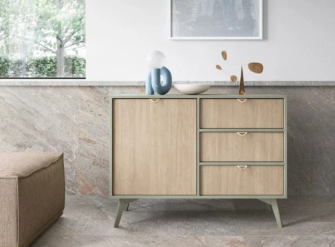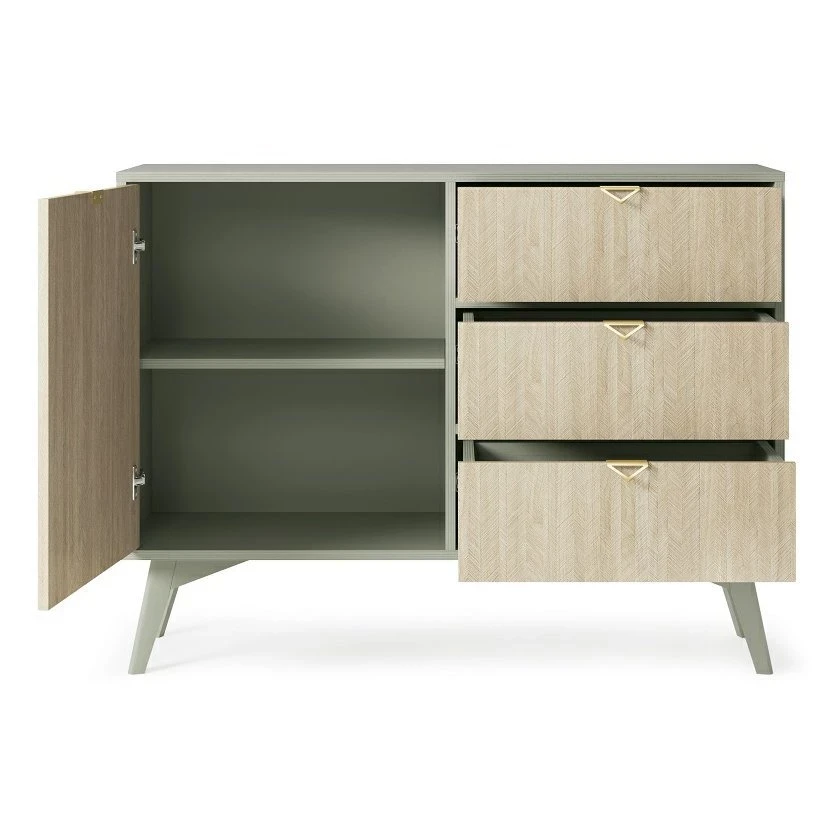 Komoda Forest dzięki trzem pojemnym szufladom z półką zapewni praktyczną przestrzeń do przechowywania w Twoim salonie,