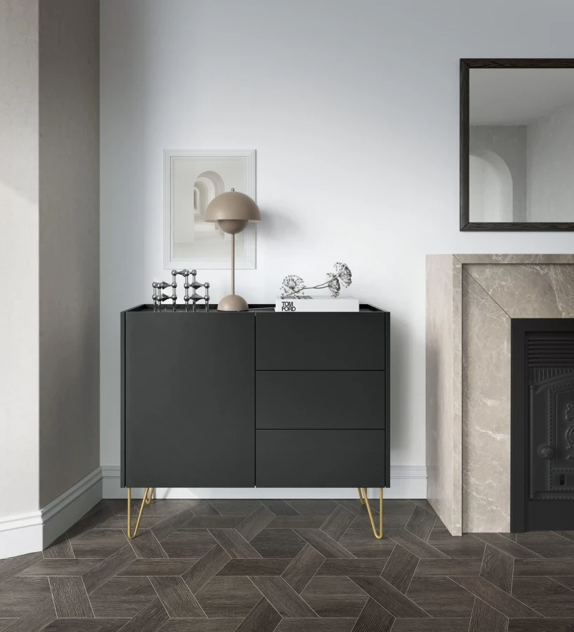 elastyczną przestrzeń do przechowywania w postaci trzech szuflad i zintegrowanej półki,