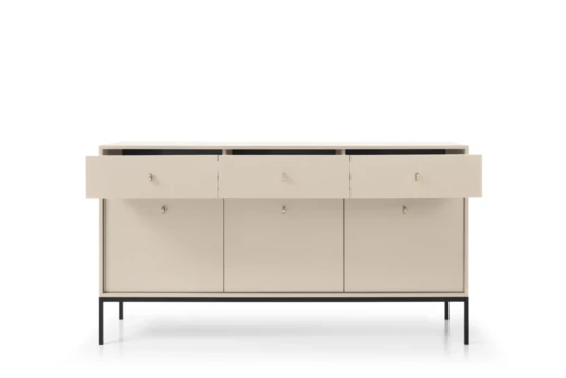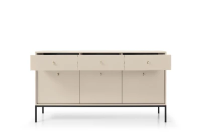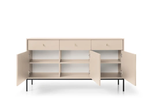 Posiada troje drzwi, trzy półki i trzy szuflady.