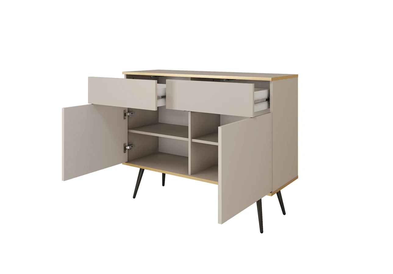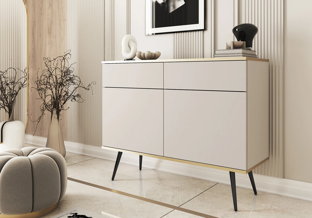 Oro stoi na eleganckich, metalowych nóżkach o wysokości 23 cm. Możesz wybrać wykończenie w kolorze złotym lub czarnym (wyboru dokonaj w konfiguratorze).