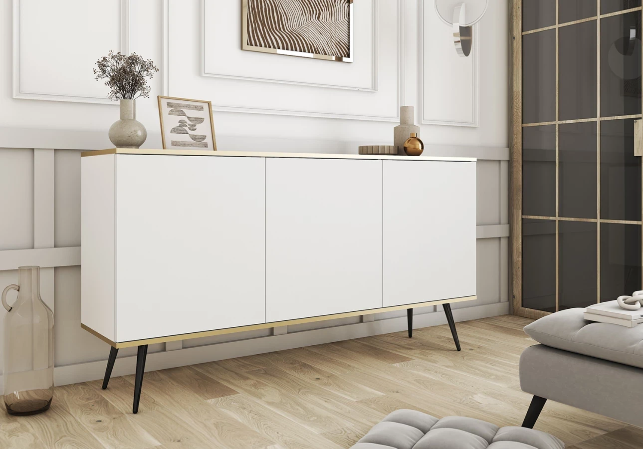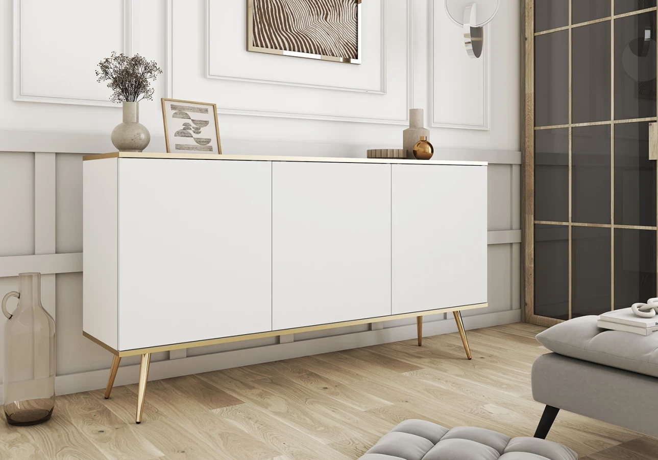 Oro stoi na eleganckich, metalowych nóżkach o wysokości 23 cm. Możesz wybrać wykończenie w kolorze złotym lub czarnym (wyboru dokonaj w konfiguratorze).