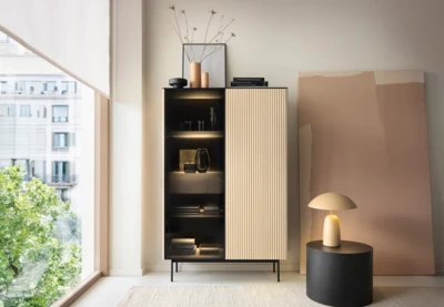 Szklana część z półką uzupełniona jest eleganckim oświetleniem LED,