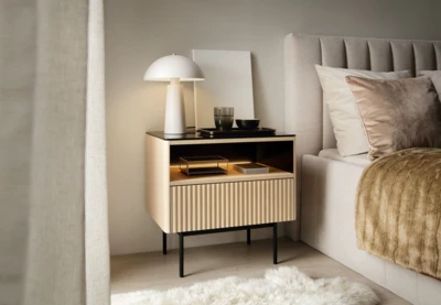 Komoda wykonana jest z wysokiej jakości płyty laminowanej i płyty MDF.
