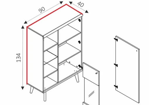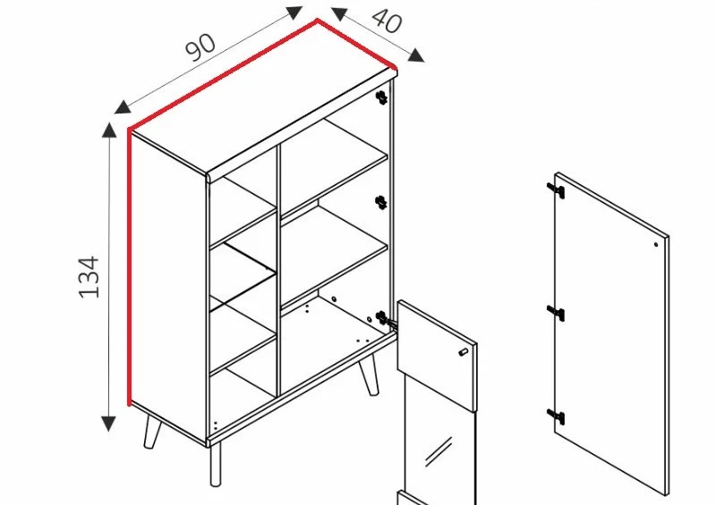 - 4x otwierane drzwi, 2x półki w środku każdych