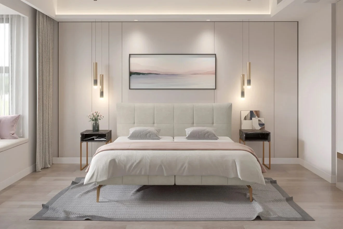 Szerokie wezgłowie zdobi eleganckie pikowanie, które nadaje łóżku wyjątkowej elegancji.