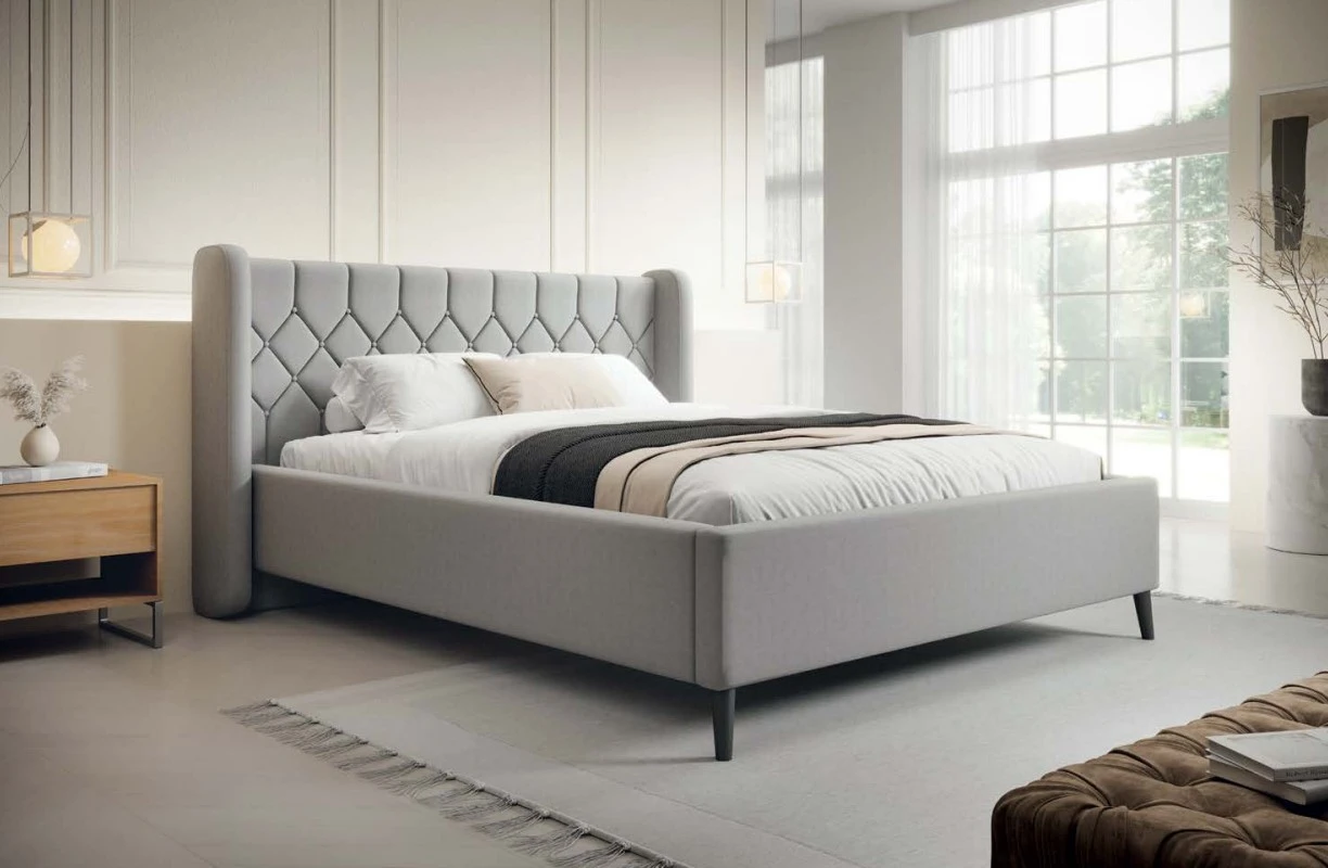 Rama łóżka oraz zagłówek są tapicerowane, a do wypełnienia użyto wysokiej jakości pianki PUR.