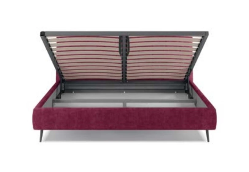 W zestawie znajduje się podnoszony stelaż z metalową ramą i siłownikami gazowymi, pod którym ukryty jest praktyczny pojemnik na pościel.