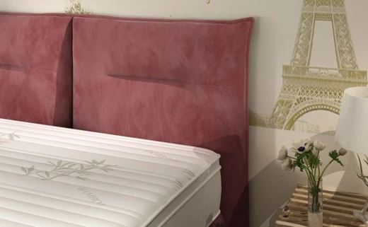 Zarówno rama łóżka, jak i wezgłowie są tapicerowane, a do wypełnienia zastosowano wysokiej jakości piankę PUR.