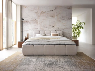 Rama łóżka oraz wezgłowie są tapicerowane, a do wypełnienia zastosowano wysokiej jakości piankę PUR.