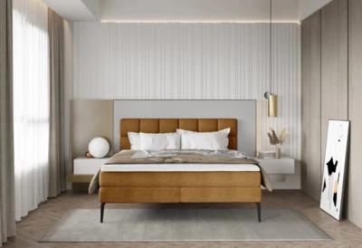 Luksusowe łóżko dwuosobowe 140x200 z wysoką powierzchnią spania, tzw. łóżko kontynentalne.