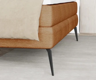 Luksusowy design łóżka podkreślają wysokie metalowe nogi .