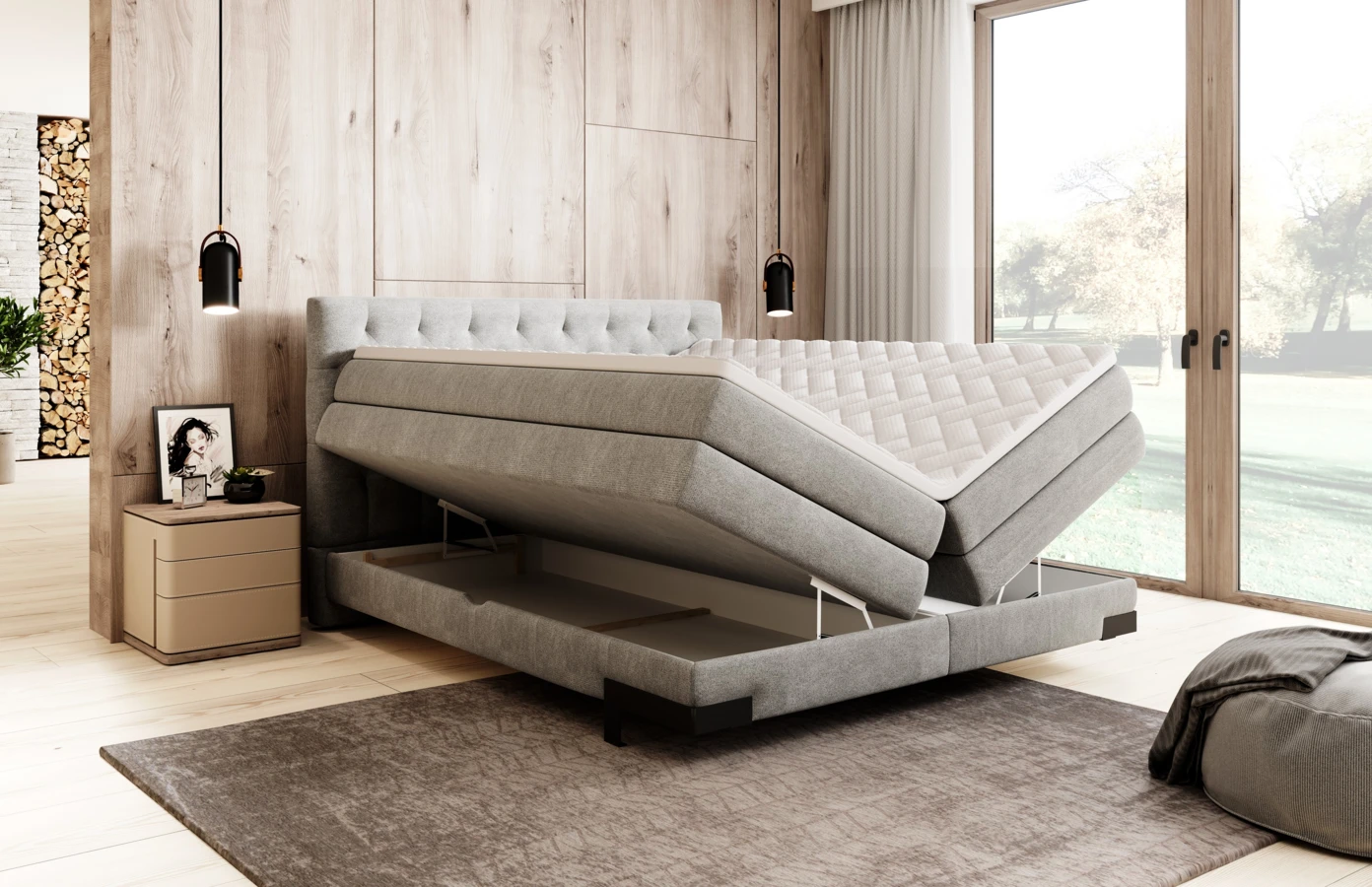 Nowoczesne łóżko podwójne z miejscem do przechowywania i wysoką powierzchnią spania,
