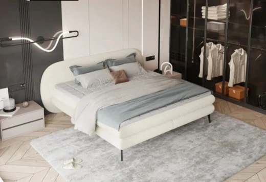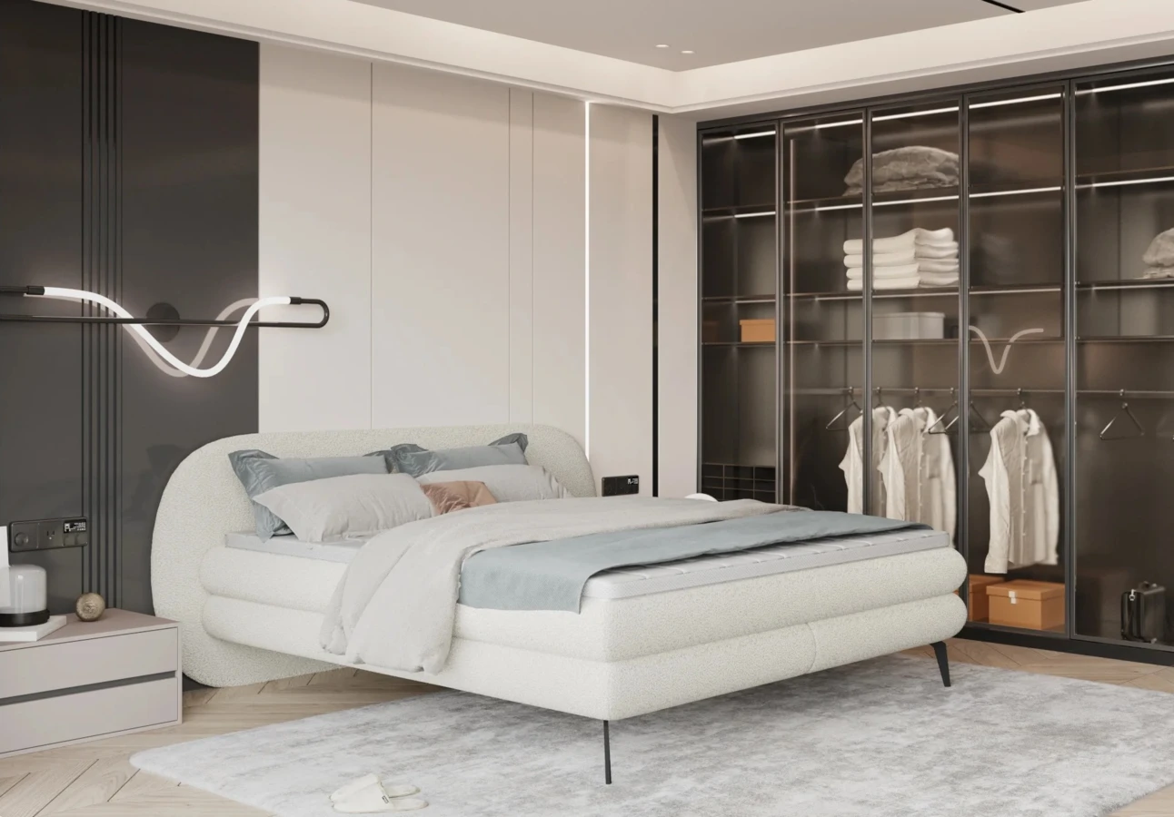 Na ilustracji łóżko jest w kolorze beżowym, ale można