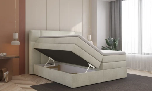 Na ilustracji łóżko jest w kolorze beżowym, ale można wybierać spośród wielu innych opcji kolorystycznych.