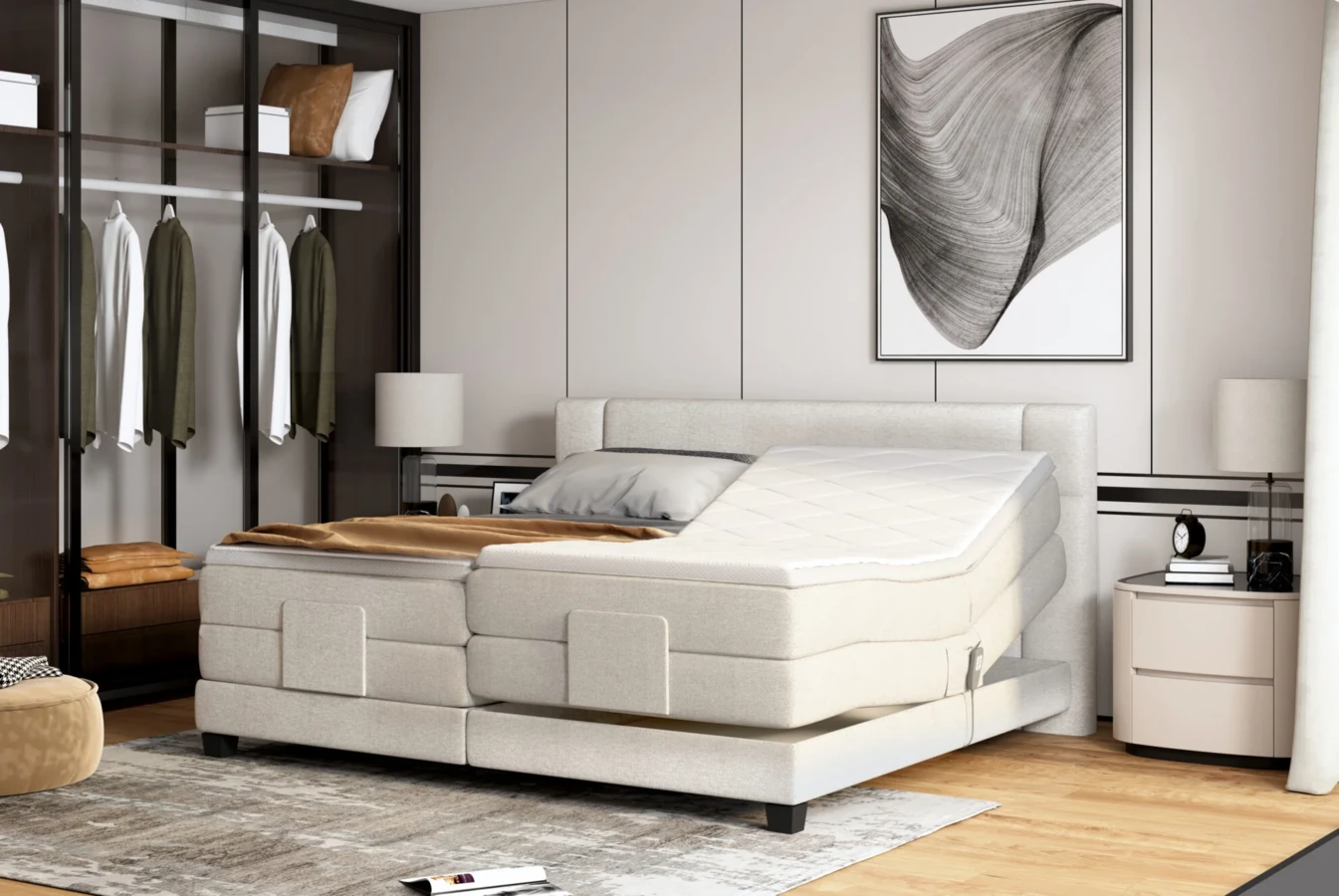 Luksusowe, podwójne, regulowane łóżko typu boxspring.