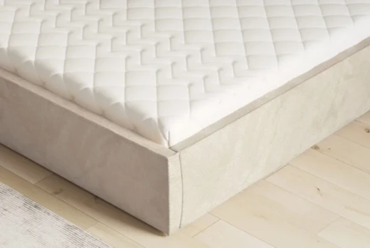 Rama łóżka i zagłówek są tapicerowane, a jako wypełnienie zastosowano trwałą piankę PUR.