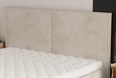 Rama łóżka i zagłówek są tapicerowane, a jako wypełnienie zastosowano trwałą piankę PUR.