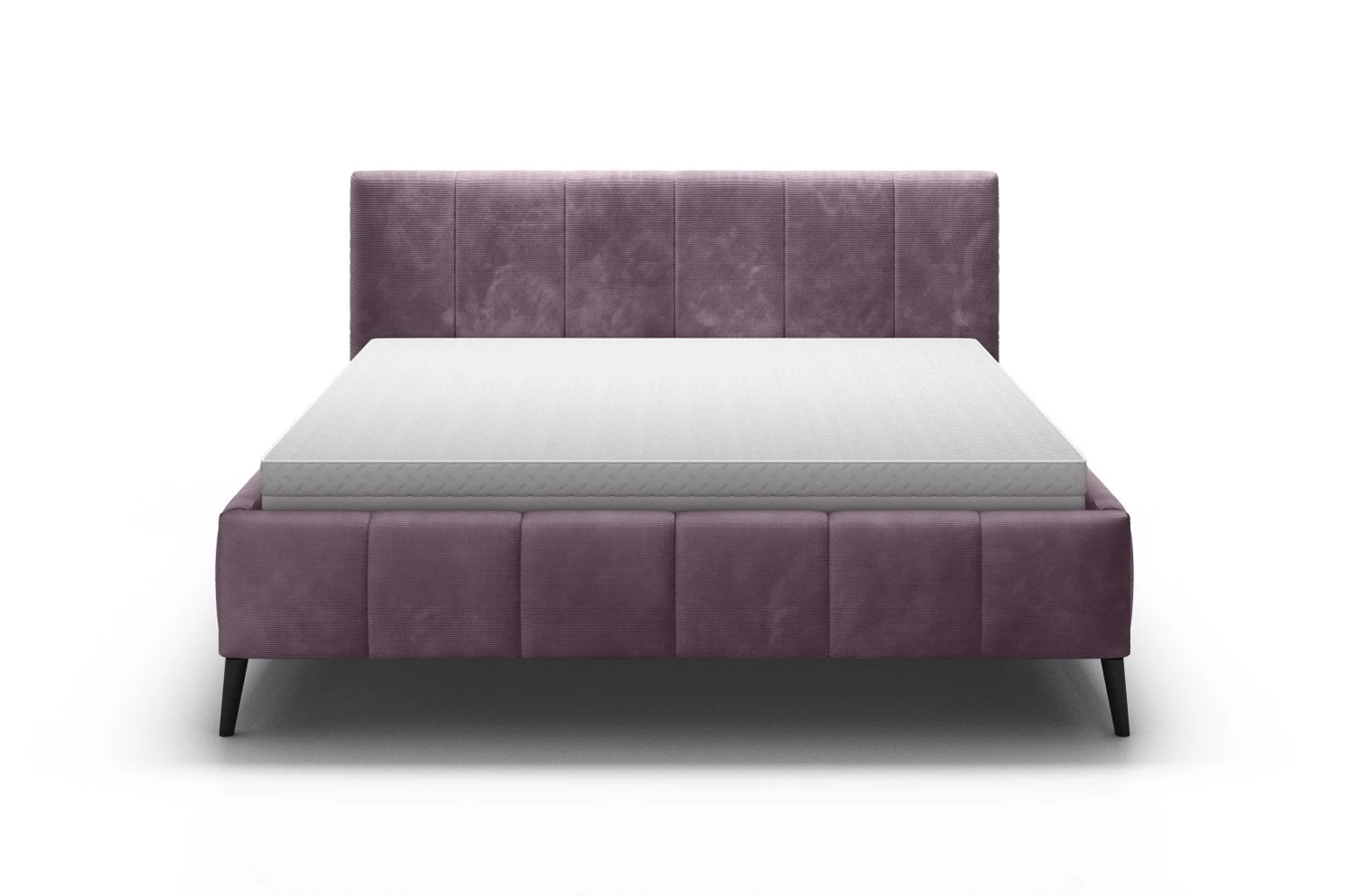 Rama łóżka i zagłówek są tapicerowane, a do ich wypełnienia zastosowano wysokogatunkową piankę PUR.
