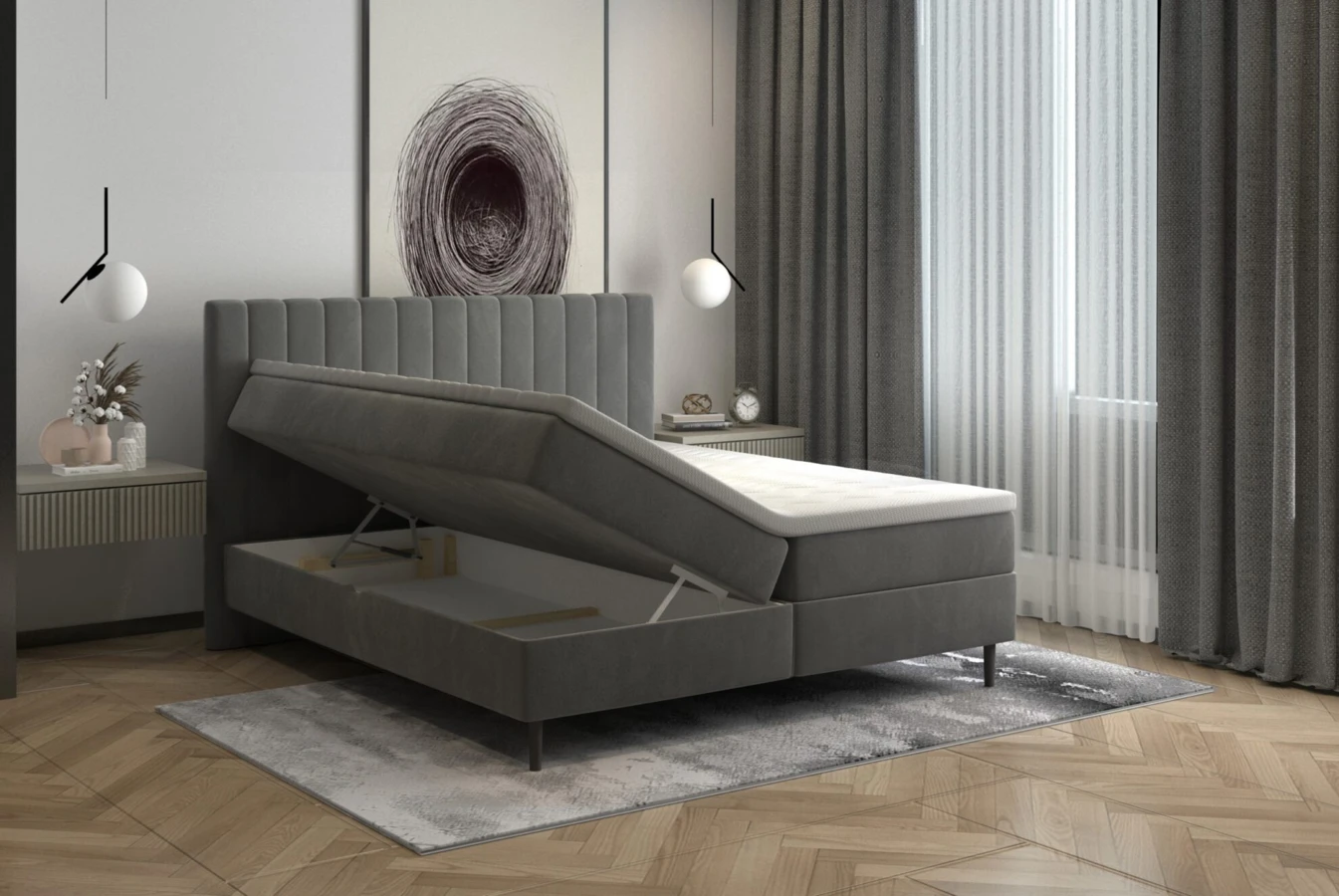 Kontynentalne łóżko małżeńskie 140×200 z praktycznym miejscem do przechowywania.