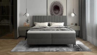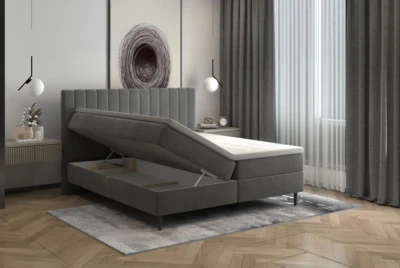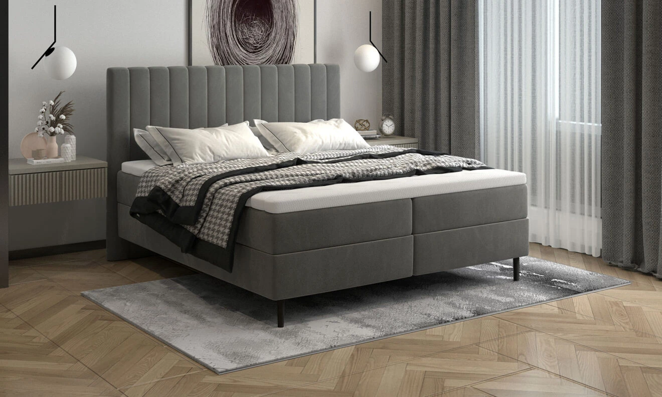 Kontynentalne łóżko małżeńskie 180×200 z praktycznym miejscem do przechowywania.