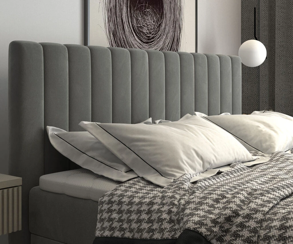 Stylowe pikowanie zagłówka nadaje łóżku luksusowego charakteru.