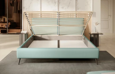 Całość dopełniają wysokie nóżki, które są szczególnie praktyczne podczas sprzątania pod łóżkiem.
