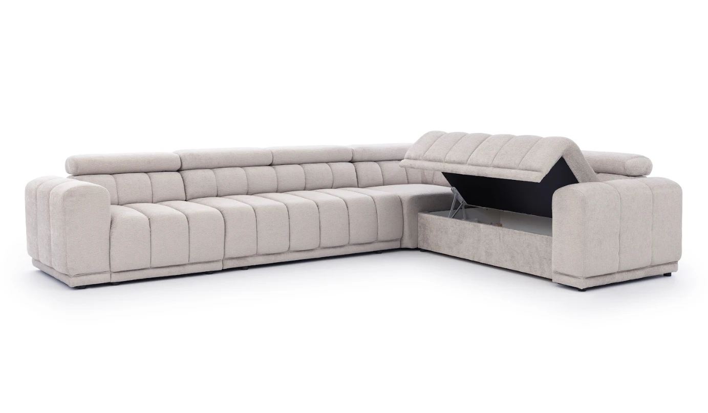 Moduł ten jest trzyosobowy, posiada miejsce do przechowywania i podłokietnik po prawej stronie,