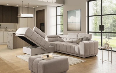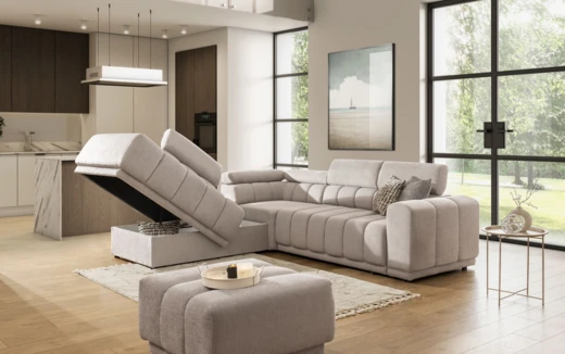 Moduł ten jest pufem z miejscem do przechowywania i oparciem po lewej stronie,