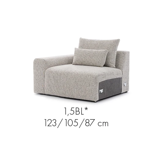 Ten moduł to wewnętrzny element jednoosobowy z lewym podłokietnikiem.