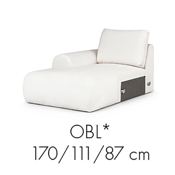 Ten moduł to jednoosobowy element z otomaną i lewym podłokietnikiem,