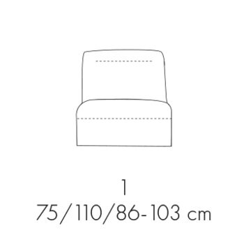 Moduł 1 jest jednoosobowym fotelem do użytku wewnątrz pomieszczeń, bez obu podłokietników,