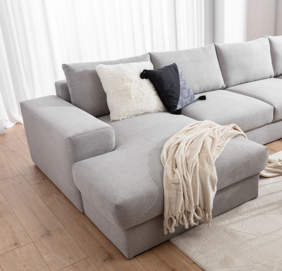 Stelaż sofy wykonany jest z połączenia drewna miękkiego i twardego.