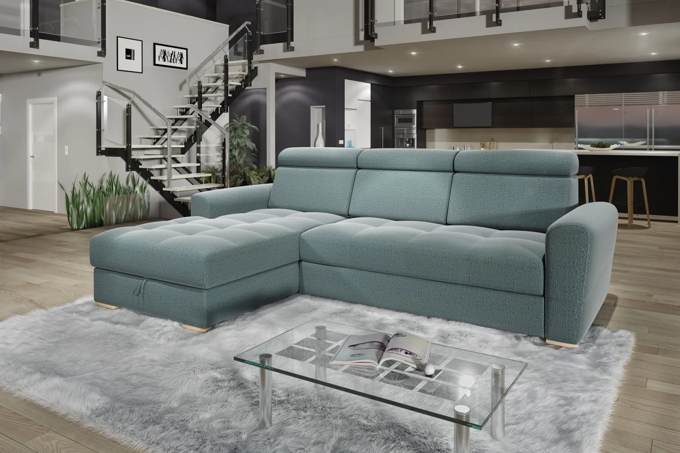Dodatkowym atutem jest pojemnik na pościel, który zwiększa funkcjonalność mebla i ułatwia przechowywanie.