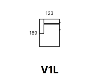 Moduł Riva V1L to otomana z pojemnikiem na pościel i z podłokietnikiem po lewej stronie.