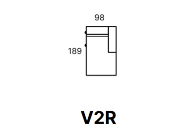 Moduł Riva V2R to otomana z pojemnikiem na pościel i z podłokietnikiem po prawej stronie.