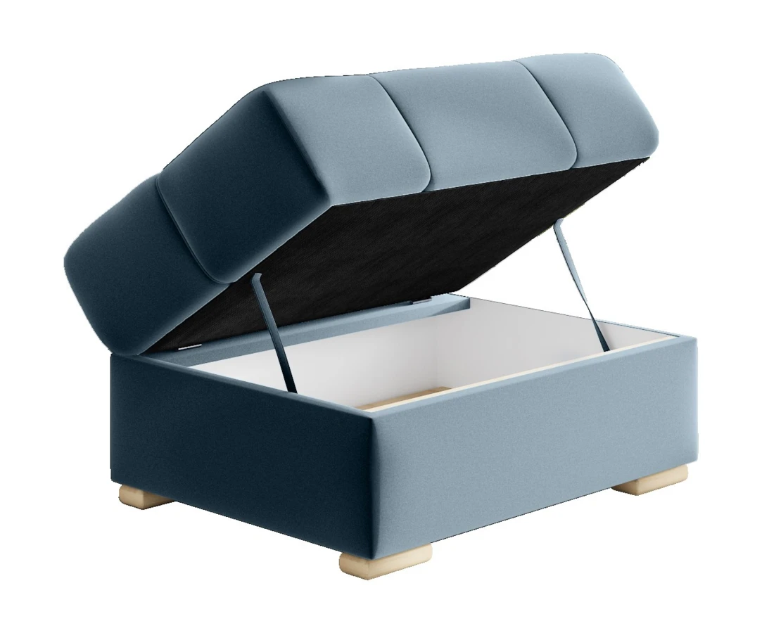 Dodatkowym atutem jest pojemnik na pościel, który zwiększa funkcjonalność mebla i ułatwia przechowywanie.