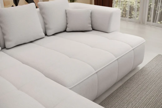 Narożnik Albio S doskonale wpasuje się w nowoczesne wnętrze i zaprasza do relaksu. Komfort użytkowania zapewniają sprężyny faliste oraz pianka PUR. Pikowane wykończenie nadaje sofie elegancki i stylowy wygląd. Szeroka otomana oferuje dużo miejsca do wygodnego wypoczynku nawet dla dwóch osób. Sofa wyposażona jest w funkcję rozkładania, umożliwiającą okazjonalne spanie. Przestawne poduszki zapewniają idealne podparcie dokładnie tam, gdzie jest ono potrzebne.
