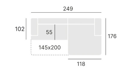 - Powierzchnia spania: 145x200 cm