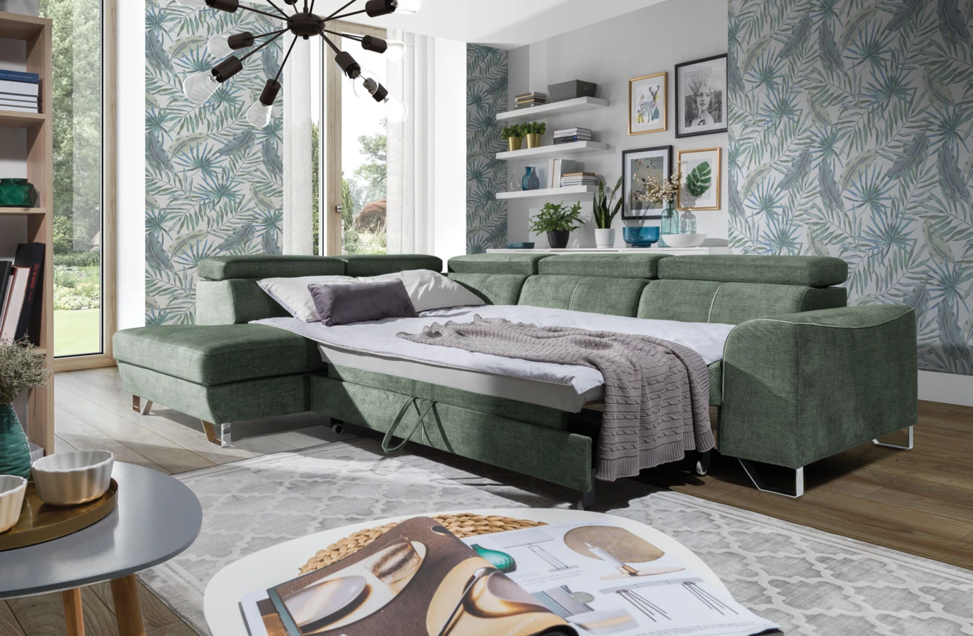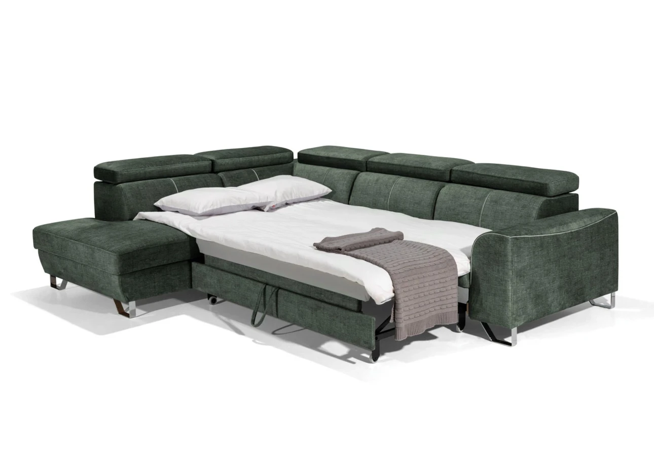 Sofa posiada funkcję rozkładania, co umożliwia okazjonalne spanie.