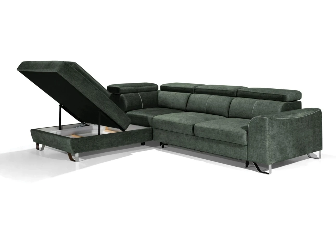 Metalowe nogi gwarantują wytrzymałość i długą żywotność sofy.