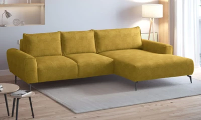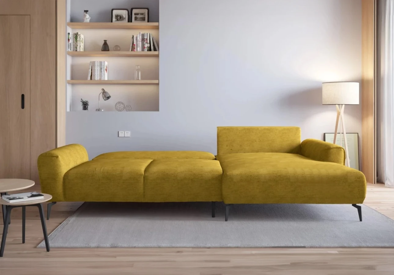 Nowoczesna sofa w kształcie litery L z funkcją spania i miejscem do przechowywania.
