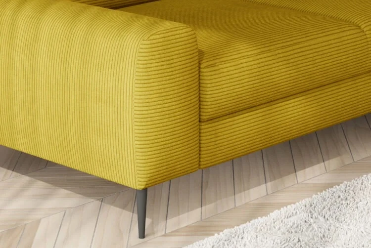 Narożnik stoi na czarnych, wysokich nóżkach, które podkreślają jej nowoczesny charakter.