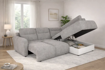 Calvano to funkcjonalny narożnik z funkcją spania i pojemnikiem, idealny dla osób ceniących wygodę, nowoczesne technologie oraz wysoką jakość wykonania.