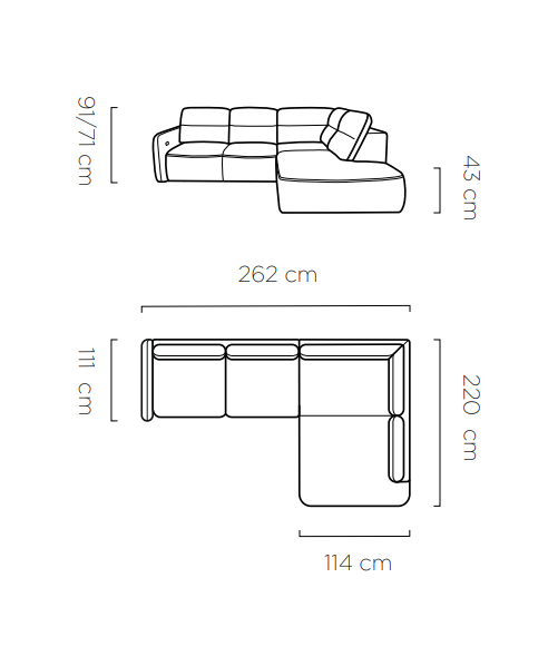 Narożnik został wyposażony w elektryczny wysuw siedziska, który pozwala łatwo zwiększyć głębokość wypoczynku i dopasować go do własnych potrzeb. Dodatkowo model posiada funkcję spania o powierzchni 120 × 200 cm, dzięki czemu z łatwością zamienisz go w wygodne miejsce do nocnego odpoczynku.