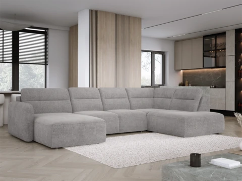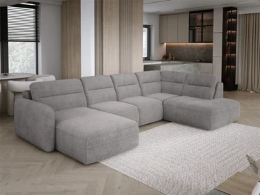 Narożnik został wyposażony w elektryczny wysuw siedziska, który pozwala łatwo zwiększyć głębokość wypoczynku i dopasować go do własnych potrzeb. Dodatkowo model posiada funkcję spania o powierzchni 120 × 290 cm, dzięki czemu z łatwością zamienisz go w wygodne miejsce do nocnego odpoczynku.